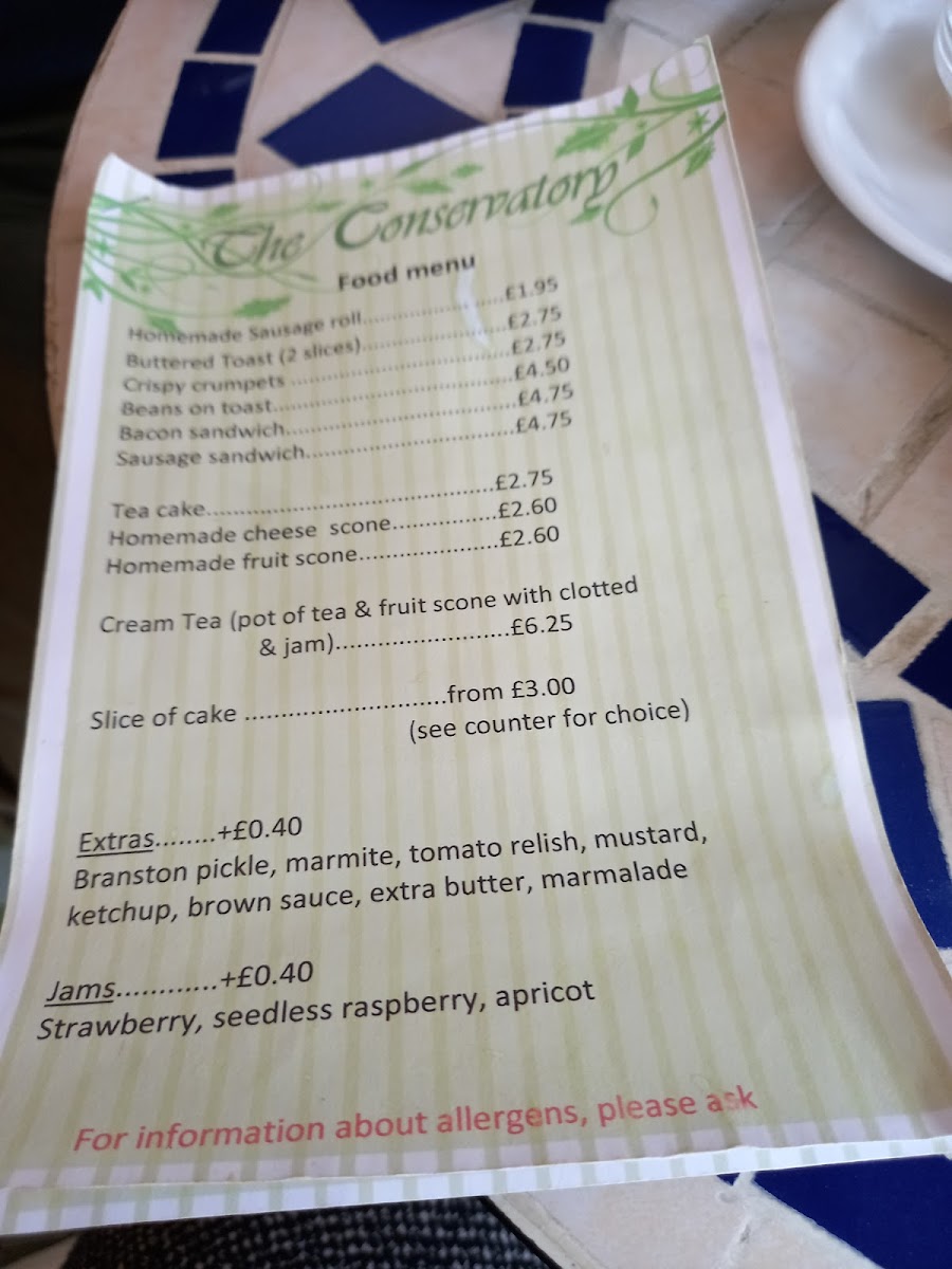 The Conservatory specializes in hearty, homemade fare that promises to comfort you after a stroll through the charming streets of Hythe. From the moment you step inside, you're enveloped by the enticing aroma of freshly brewed coffee and baked goods. Notable menu items include their homemade sausage rolls, which are a savory delight, and the beloved cheese and fruit scones that will make your taste buds dance. If you're in the mood for a light snack, their crispy crumpets and perfectly buttered toast are sure to hit the spot. For a quintessential British tea experience, treat yourself to the cream tea for just £6.25, which pairs beautifully with a selection of cakes that have garnered rave reviews from satisfied customers.